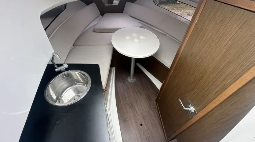This boat is not only a beauty to behold but also a powerhouse on the water, equipped with a robust Yamaha 300 hp engine that offers impressive speed and agility. The interior provides more volume and comfort, making it perfect for family outings or entertaining friends. The reimagined cockpit layout and expanded sunbathing deck create an inviting space for relaxation and enjoyment under the sun.