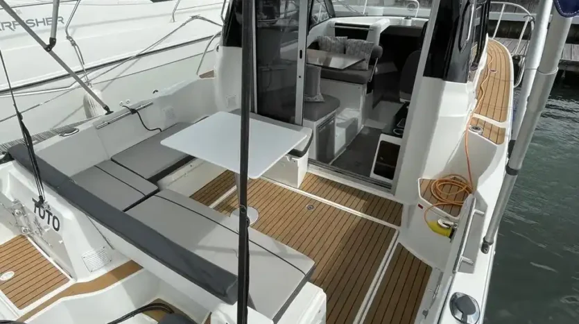 – ‘L’ Shaped style seating in cockpit fitted with storage beneath and table in between