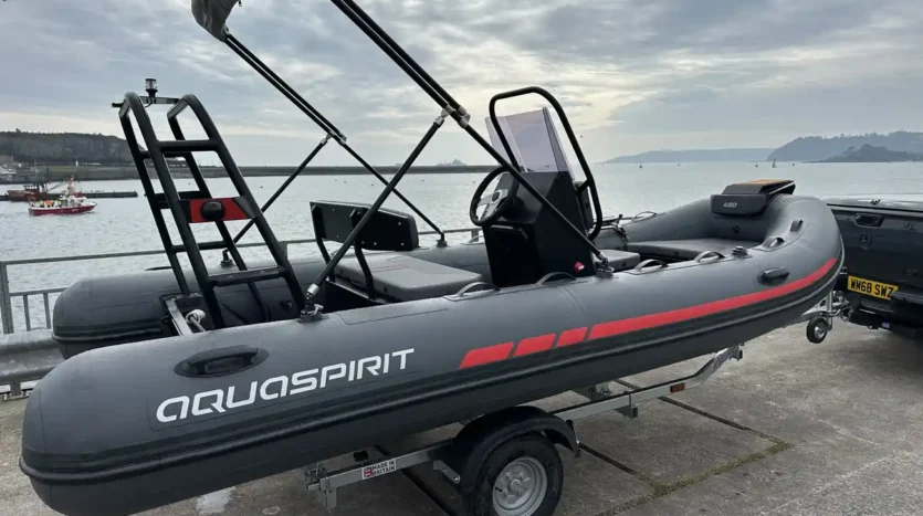 Introducing the Aquaspirit Ribs 450, an exceptional powerboat designed for both leisure and adventure on the water. As a premier offering from Aquaspirit Ribs, this model is a versatile rigid inflatable boat (RIB) that excels in various aquatic activities, whether you are exploring tranquil waters, indulging in thrilling water sports, or enjoying a relaxing day at sea. This boat show display model is now available for sale at a fantastic opportunity, with a 10% discount off the recommended retail price (RRP). Powered by a reliable Suzuki 50hp engine with a full new warranty, this vessel promises performance and dependability for all your boating adventures.